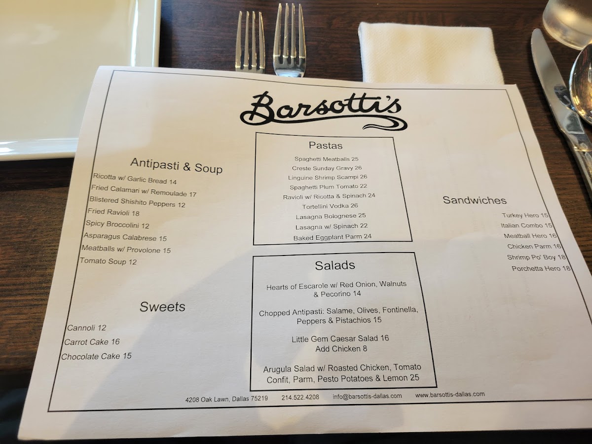 Introducing Barsotti's, a hidden gem in Dallas at 4208 Oak Lawn Ave, where authentic Italian cuisine shines through every plate. The menu boasts a delightful array of dishes that encapsulate the rich flavors of Italy. Diners rave about the linguine with shrimp scampi and tortellini vodka, both expertly prepared with fresh, al dente pasta and tantalizing sauces. Whether you’re craving hearty spaghetti and meatballs or lighter options, there’s something for everyone, including vegetarian choices.